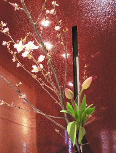 ▲漆塗りの花器と、漆和紙を張ったバックパネル