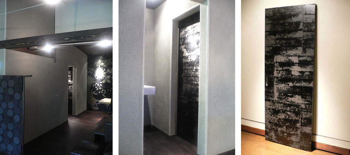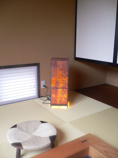 ▲漆和紙を張った間仕切りパネル。重厚感があります