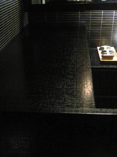 照明の光で漆の刷毛むらが浮かび上がって綺麗でした。